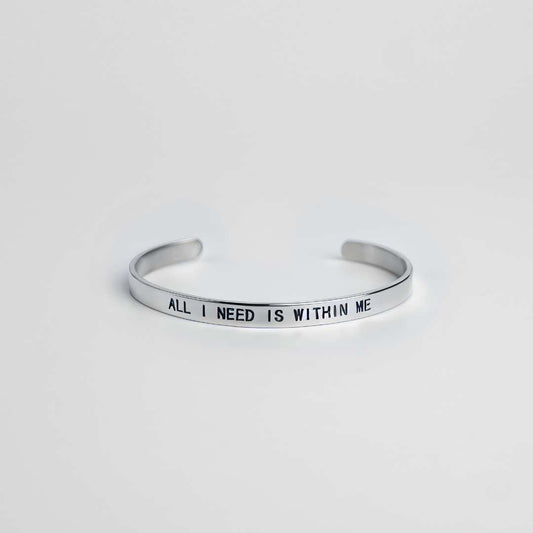 All I Need is Within Me Non-Tarnish Stainless Steel Adjustable Cuff Bracelet