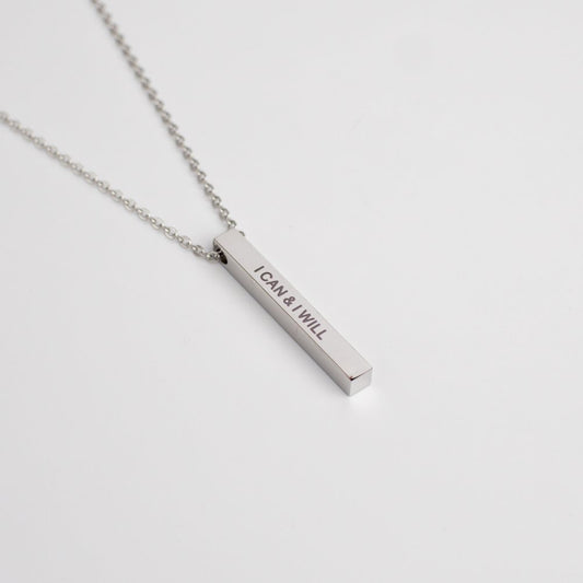 I Can & I Will Non-Tarnish Stainless Steel Bar Necklace