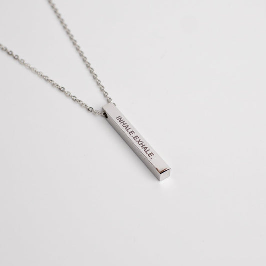 Inhale Exhale Non-Tarnish Stainless Steel Bar Necklace