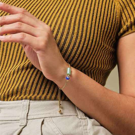 Well-balanced Stainless Steel Bracelet - Aquamarine with Evil Eye