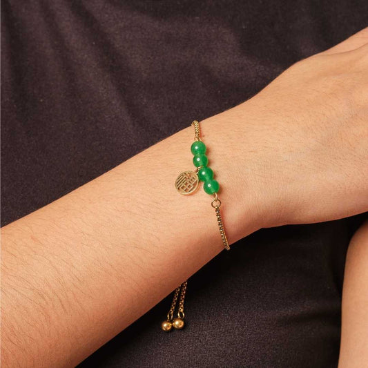 Chinese Fortune Stainless Steel Bracelet - Luck Symbol + Jade