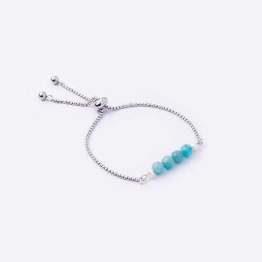 Serenity Stainless Steel Adjustable Bracelet - Amazonite Stone with Freshwater Pearl