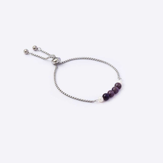 Serenity Stainless Steel Adjustable Bracelet - Amethyst with Freshwater Pearl