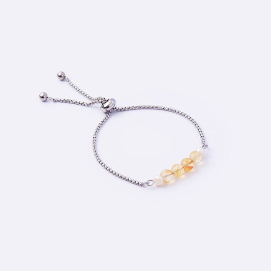 Serenity Stainless Steel Adjustable Bracelet - Citrine Stone with Freshwater Pearl