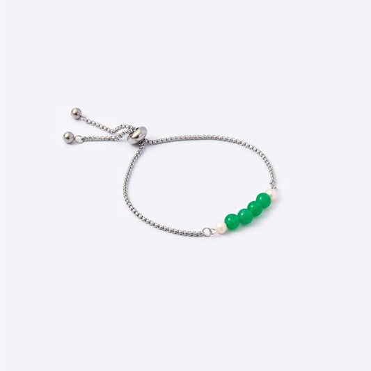 Serenity Stainless Steel Adjustable Bracelet - Jade with Freshwater Pearl