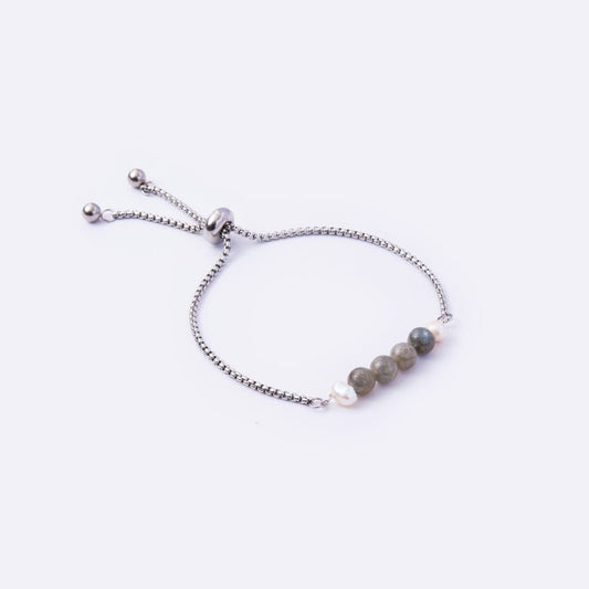 Serenity Stainless Steel Adjustable Bracelet - Labradorite with Freshwater Pearl