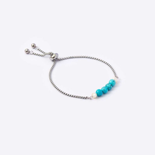 Serenity Stainless Steel Adjustable Bracelet - Turquoise with Freshwater Pearl