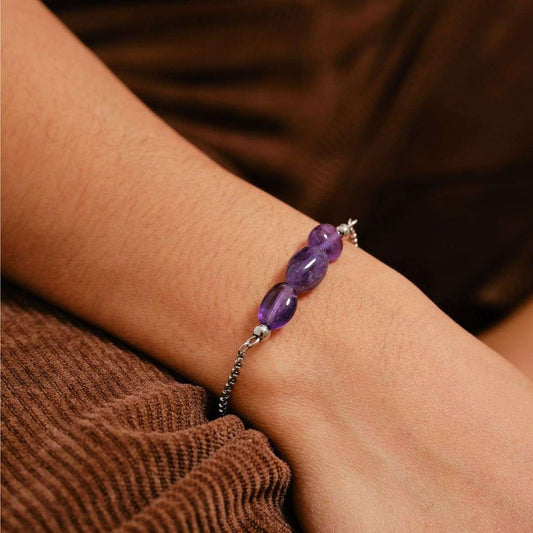 Well Rounded Stone Stainless Steel Adjustable Bracelet - Amethyst