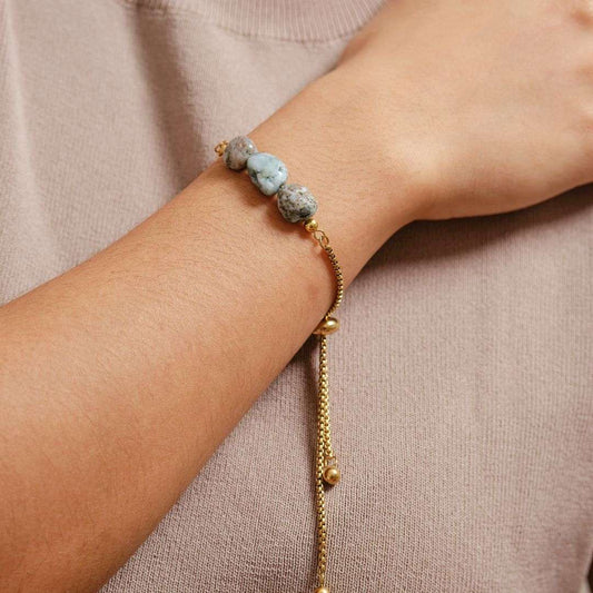 Well Rounded Stone Stainless Steel Adjustable Bracelet - Larimar