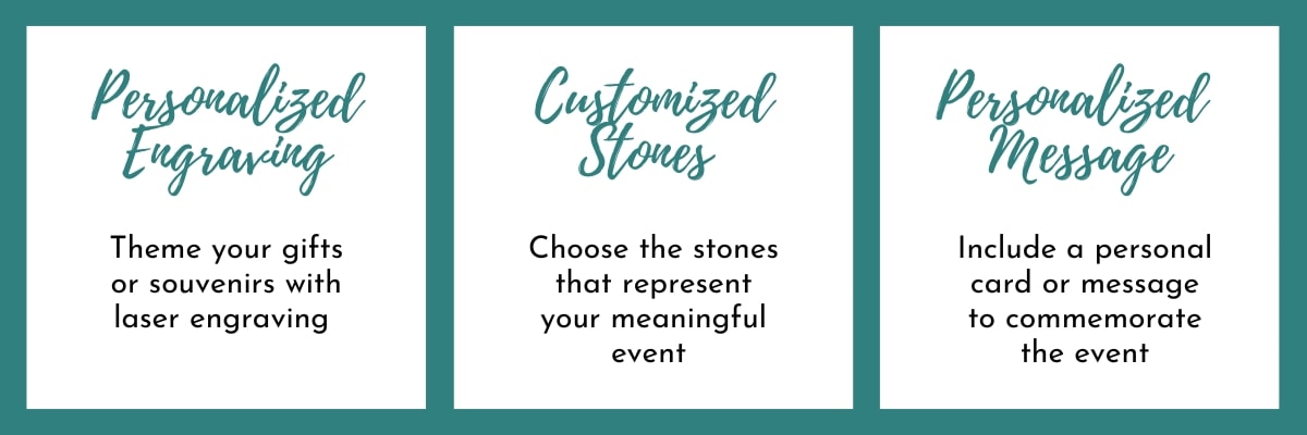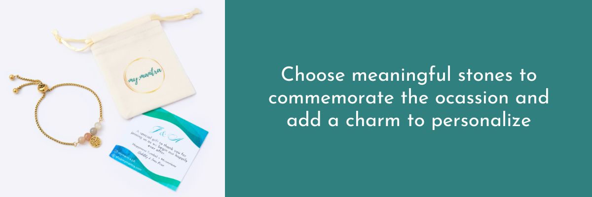 Tailor-match your gifts to your wedding theme with MyMantra Stone Bracelets. Choose meaningful stones and add a charm for a personal touch. Perfect for your entourage, these keepsakes combine thoughtfulness and style.