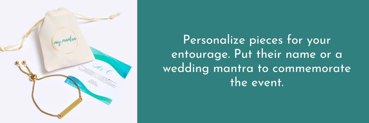 Make your special day unforgettable with custom MyMantra jewelry, perfect for your entourage. Add a personal touch with laser-engraved names, dates, or messages to create meaningful keepsakes they'll cherish forever.
