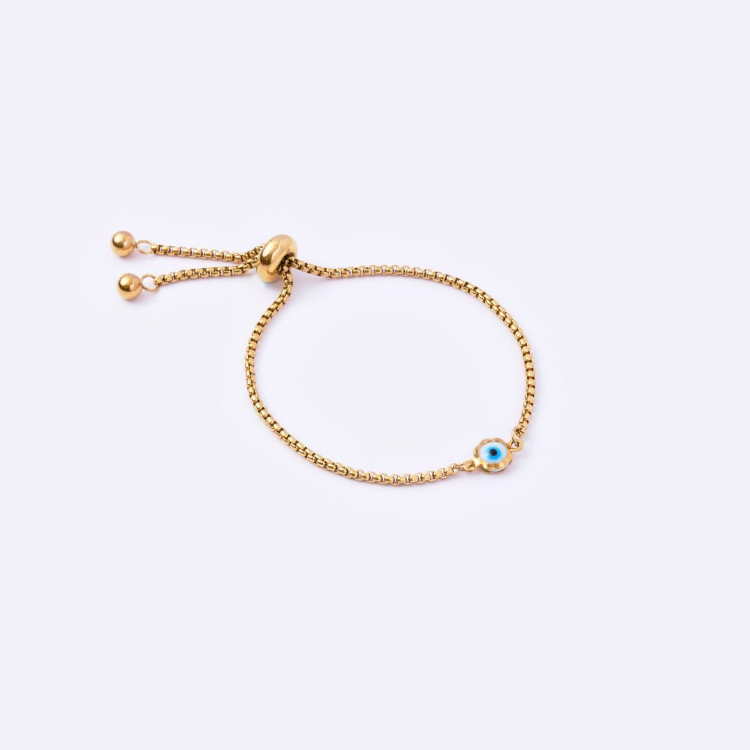 Discover our Evil Eye bracelet with an adjustable, non-tarnish stainless steel chain. Designed to protect against negativity, this stylish piece combines durability with timeless symbolism. Perfect for daily wear, it brings both protection and positivity. Ideal for those seeking meaningful and lasting jewelry.